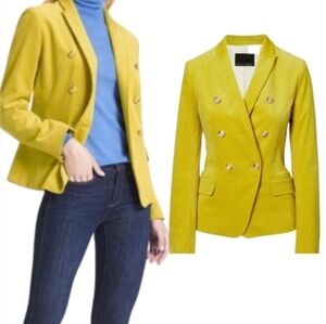 *NWT* Banana Republic Corduroy Double Breasted Blazer, Size 4. Color: "Spiced Pear" (yellow with a hint of chartreuse green). 91% cotton, 7% polyester, 2% spandex. Dry Clean.