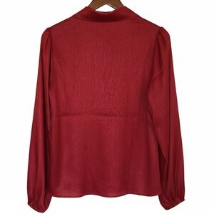 Michael Kors Red Currant Hammered Satin V-Neck Blouse Gold Hardware S NWT