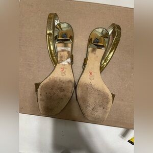 Step out in style with these chic gold slingback heels. Perfect for adding a touch of elegance to any outfit. Please ask if any questions. Final sale.