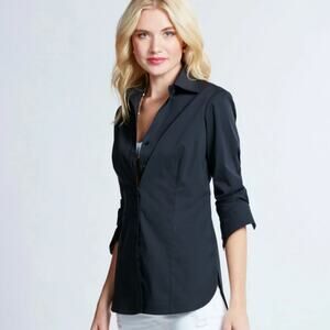Finley, Joey Tailored Black Button Down Poplin Shirt w Tailored Shape Women’s XS