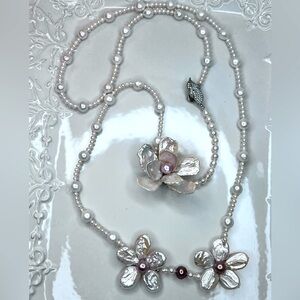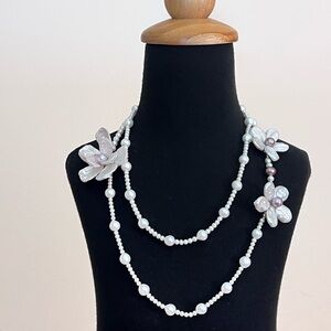 ๐ฅ๐ฅ Handmade 42โ Freshwater Keshi Coin Edision Pearl 3 Flower ๐บ Long Necklace