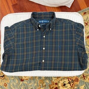 Ralph Lauren Polo Men's Green, Blue, and Tan tartan Plaid Shirt Large preppy