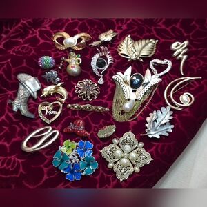 This is a beautiful lot of 22 vintage brooches