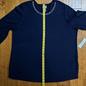Chico's Blue Boxy 3/4 Sleeve Sweater Size 4 Sparkle Detail Lagenlook Relaxed