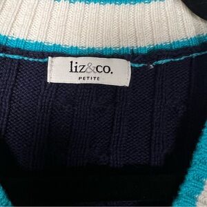 liz & co. Navy V-Neck Sweater with Teal and White Accents Preppy