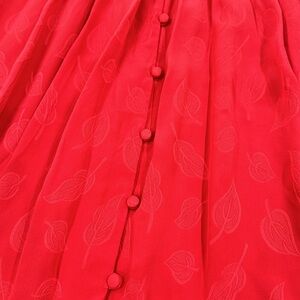 Anthropologie Maple 100% Silk Vintage Style Crimson Red Leaf Print Dress - 2