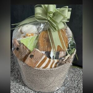 Cotton rope gift basket filled with quality items. Will be disassembled, but will include cello bag and pull bow.