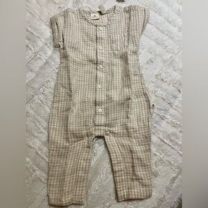 Berkshire plush baby blanket, Angel Dear giraffe lovey and swaddle blanket, Sophie La Giraffe teether and Baby’s First Months log book, unbranded silicone teether, 2 Kate Quinn socks and knotted cable knit beanie. Gap cotton gingham romper 3/6 months. All items are new. Ring teether and basket do not have tags.
