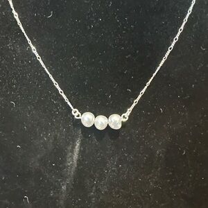 This elegant silver necklace features three lustrous pearls, perfect for adding a touch of sophistication to any outfit. Sterling silver opulenza