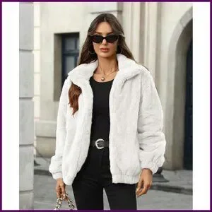 • Style: Features a chic faux fur collar, full zip-up front, and convenient pockets. The loose-fitting, cropped silhouette provides a modern, comfortable look.