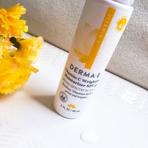 Derma E's Vitamin C Broad Spectrum SPF 45 Weightless Moisturizer is a lightweight multi-purpose moisturizer that works to brighten, hydrate and prime the skin while providing UVA/UVB sun protection.