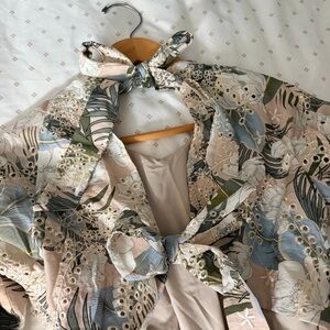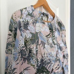 Gianni Bini Tinsley palm print long sleeve cut-out dress, tropical eyelet, 6