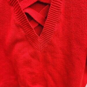 Introducing a stylish and comfortable sweater from Forever 21 in a beautiful red color. This pullover sweater features a lattice V-neckline, long sleeves, and a cropped design that is perfect for casual wear or workwear. It is made for regular fit and comes in size M. The solid pattern and pullover style make it an ideal choice for any occasion, be it travel or a casual outing.