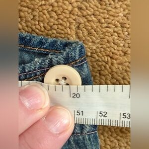 All Magnolia Pearl items are intentionally heavily distressed: sunfading, hand mending, sandblasting, patches, fraying, pilling, rips, paint stains, obvious crooked stitching, holes, shredded fabric with hanging threads, discoloration, mixed colored sizes of mismatched buttons, raw edges, dirt & oil stains, bleaching to make them look threadbare, worn & vintage. There is also a chemical factory scent from the distressing process.