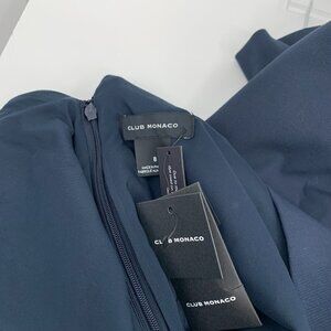 Club Monaco Button Back Vent navy blue shift dress sheath midi career new 8