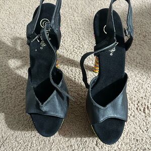 Eye-catching platform heels with vibrant beaded design. Perfect for a bold statement.