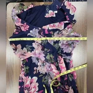 London Times Women's Ruffled Chiffon Flowy Floral Faux Wrap Maxi Dress Size 6