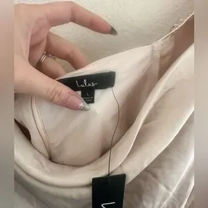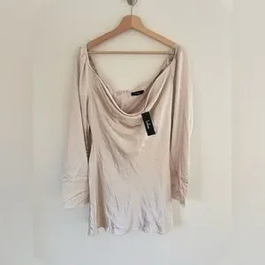Lulus Sensational Fate Champagne Satin Cowl Neck Mini Dress