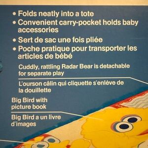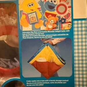 Playskool Fold’n Go Quilt new inbox from 1990. Adorable big bird and Cookie Monster delight baby with lots of Sesame Street fun. 12 fun activities. Ages birth to 18 months. Machine washable, and folds nicely into a tote with a handy storage pocket. Baby can play and nap on cosy comfortable quilt.