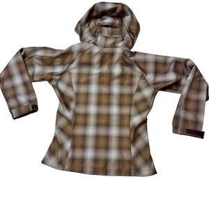 The North Face Womens Apex ClimateBlock Plaid Hooded Jacket Brown Tan Softshell