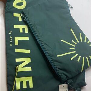Offline by Aerie/Stylish green cosmetic bags. Features a bright yellow design. Perfect for organizing essentials.Brand new w tags. Large and small, plenty of room.