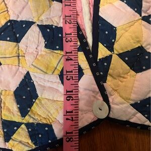 Beautiful colorful vest made out of vintage quilt. There is no stains or issues with the vest. Measurements are as shown. It fits S/M best.