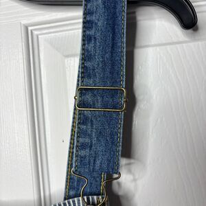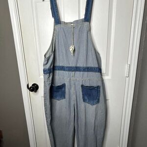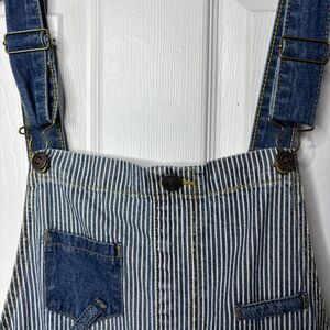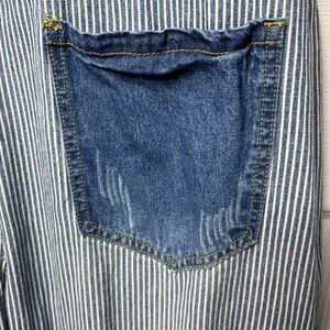 NWT Easel L Los Angeles Womens Denim Overalls Railroad Stripe Size Large
