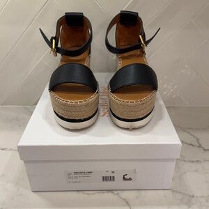 Step out in style with these chic black espadrille wedge sandals. Perfect for any occasion. Lightly worn once, minimal signs of wear.