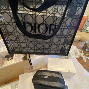 Dior GWP/vip complementary DIOR black mesh and matching logo mesh cosmetic bag