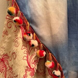 Statement piece! Denim Print Reversible Jacket with Pom poms by designer Viviana Gabeiras