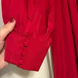 Plunging v-neck with buttoned cuffs. Flowy material and rich color.