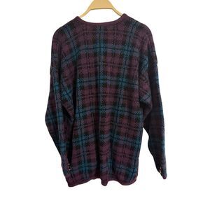 Vintage Maggie Lawrence Plaid Acrylic Purple Sweater Cardigan Oversized Small
