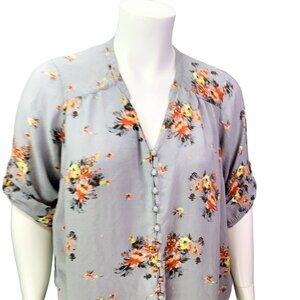 Torrid Womens Harper Challis Blouse Gray Floral Button Loop Plus Size 3 | 3X
