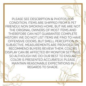 Condition: VGUC. No rips, stains, tears, or holes. No obvious flaws, just has a bit of a worn feel. This fabric does wrinkle, so buyers should anticipate that after being shipped, it will not look freshly steamed as it does in the listing photos. Please see photos for best representation of overall condition, as well as flat lay measurements.