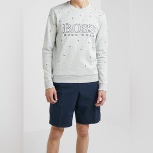 Hugo Boss Crewneck Sweatshirt Grey All Over Letter Logo Print Medium
