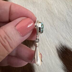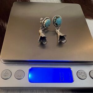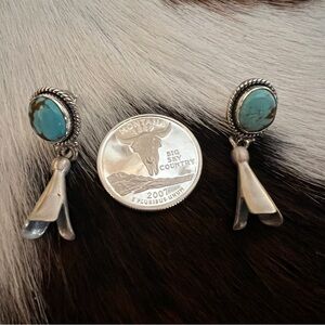 ❤️ #8 Turquoise Matte 925 Navajo Style Dangle Squash Blossom Earrings 1.41”L