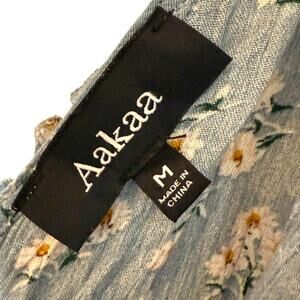 Aakaa Blue Floral Ruffle Mini Dress Sz Medium Sleeveless Boho Cottagecore Summer