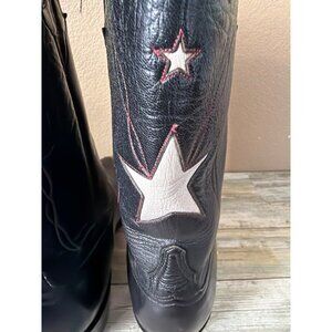 Lucchese Classics Star Inlay Cowboy Boots Black Leather USA Vintage 10.5 w/FLAW