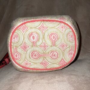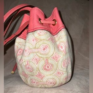 Coach Mini Dempsey Bucket Jacquard Rose PINK Leather Trim.