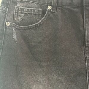 The We The Free Blue Mini Skirt is perfect for a casual night out, featuring a chic mini length and a black color. Its distressed, worn appearance with a raw, frayed hem adds an edgy touch to your outfit. Crafted for comfort and style, this skirt is a versatile addition to your wardrobe.