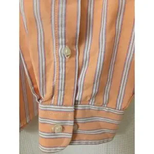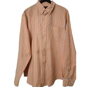 Keywords: Lands End shirt, mens dress shirt, orange striped shirt, button down shirt, long sleeve shirt, XL shirt, mens casual shirt, preppy style, college style, summer shirt, spring shirt, work shirt, weekend wear, striped button up