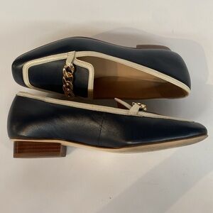 Talbots Estelle Chain Square Toe Leather Loafers Navy White Sz 6.5