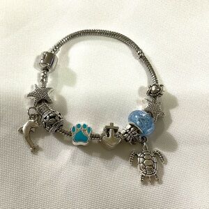 Silver Tone Sea Life Charm Bracelet