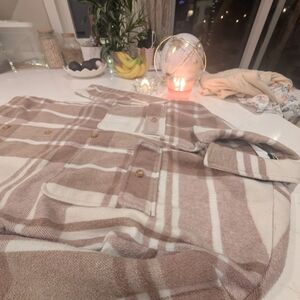 Banana Republic Cream and Brown Plaid Thick Flannel Coat/Jacket/Sweater