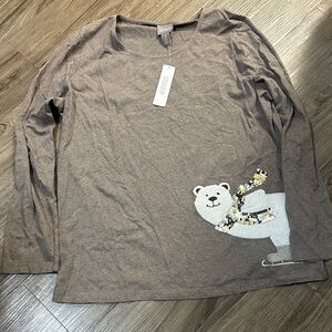 Chico's Brown Long Sleeve Top with Polar Bear Design