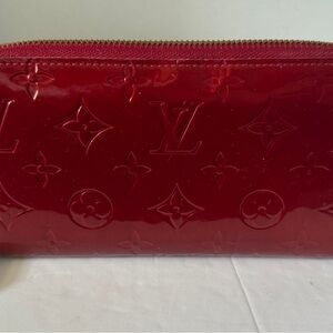 Authentic Louis Vuitton LV Red Vernis Leather Zippy Wallet