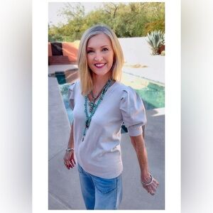 NWT GRAY PUFF SLEEVE SWEATER-S
