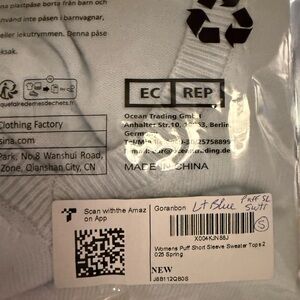 Amazon Brand top. Never worn other than for Photoshoot. Great condition. Size chart, fabric content, & care labels in pics. Most items in original plastic packaging. PACKAGING is the NWT TAG. Many Amazon brands have no labels on clothing as you probably know. All items from no smoking home. For reference: I am 5’7, 120 lbs,size 2-4. 34B. Wearing size small.