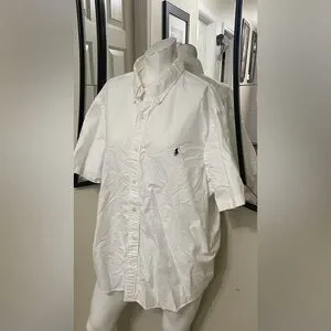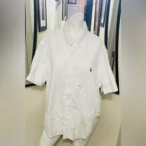 Crisp white button down shirt. Features classic Polo logo. Ideal for casual wear.