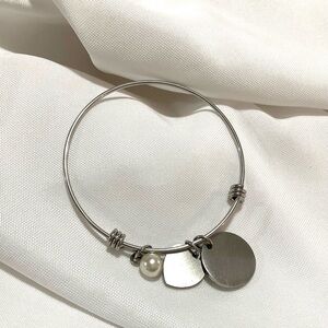 This listing is for a BEST STEP MOM Alex & Ani style bracelet. It has a faux pearl as well as a best step mom heart charm and a disc that reads “Thank you for loving me as your own” it measures size 6.50 but can be stretched to fit other size wrists. It is in good condition.